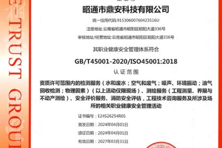 2003年11月10日,昭通市鼎安科技有限公司成立,初始主要從事第三方安全工程技術(shù)服務(wù),經(jīng)多年運(yùn)營(yíng),發(fā)展為多專(zhuān)業(yè)綜合科技平臺(tái),為社會(huì)提供多種專(zhuān)業(yè)技術(shù)服務(wù)工作。 現(xiàn)公司注冊(cè)資金為1200萬(wàn)元,公司法定代表人:毛衛(wèi)旭。公司主要業(yè)務(wù):安全評(píng)價(jià)、安全標(biāo)準(zhǔn)化評(píng)審、安全工程技術(shù)服務(wù);環(huán)境監(jiān)測(cè)、職業(yè)衛(wèi)生檢測(cè)、檢驗(yàn);法律訴訟及非訴訟服務(wù);司法鑒定、固定資產(chǎn)投資項(xiàng)目節(jié)能服務(wù);工程咨詢(xún);工程測(cè)量測(cè)繪;安全教育培訓(xùn)等。是安全生產(chǎn)服務(wù)、安全教育培訓(xùn)機(jī)構(gòu),也是環(huán)境監(jiān)測(cè)和職業(yè)衛(wèi)生服務(wù)機(jī)構(gòu),同時(shí)也是綜合的檢測(cè)檢驗(yàn)、綜合科技平臺(tái)服務(wù)機(jī)構(gòu)。多年來(lái)為公、檢、法、司、軍、警、海關(guān)、仲裁、安監(jiān)、工礦商貿(mào)企業(yè)、社會(huì)團(tuán)體及個(gè)人提供多專(zhuān)業(yè)技術(shù)服務(wù)。