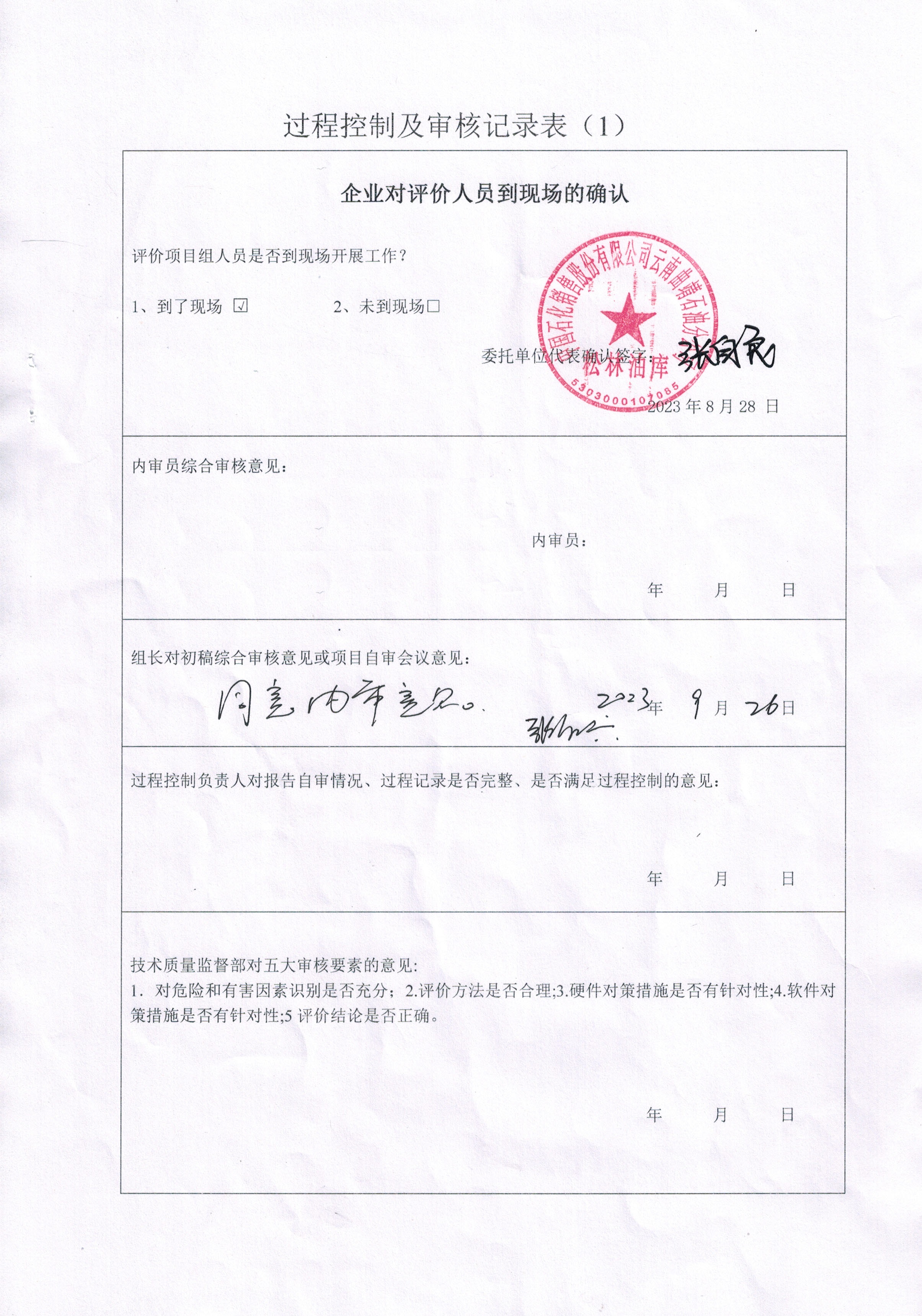 過程控制審核 | 內(nèi)審意見(√ 通過 口 不通過 ) √ 是 口 否 | |||||||