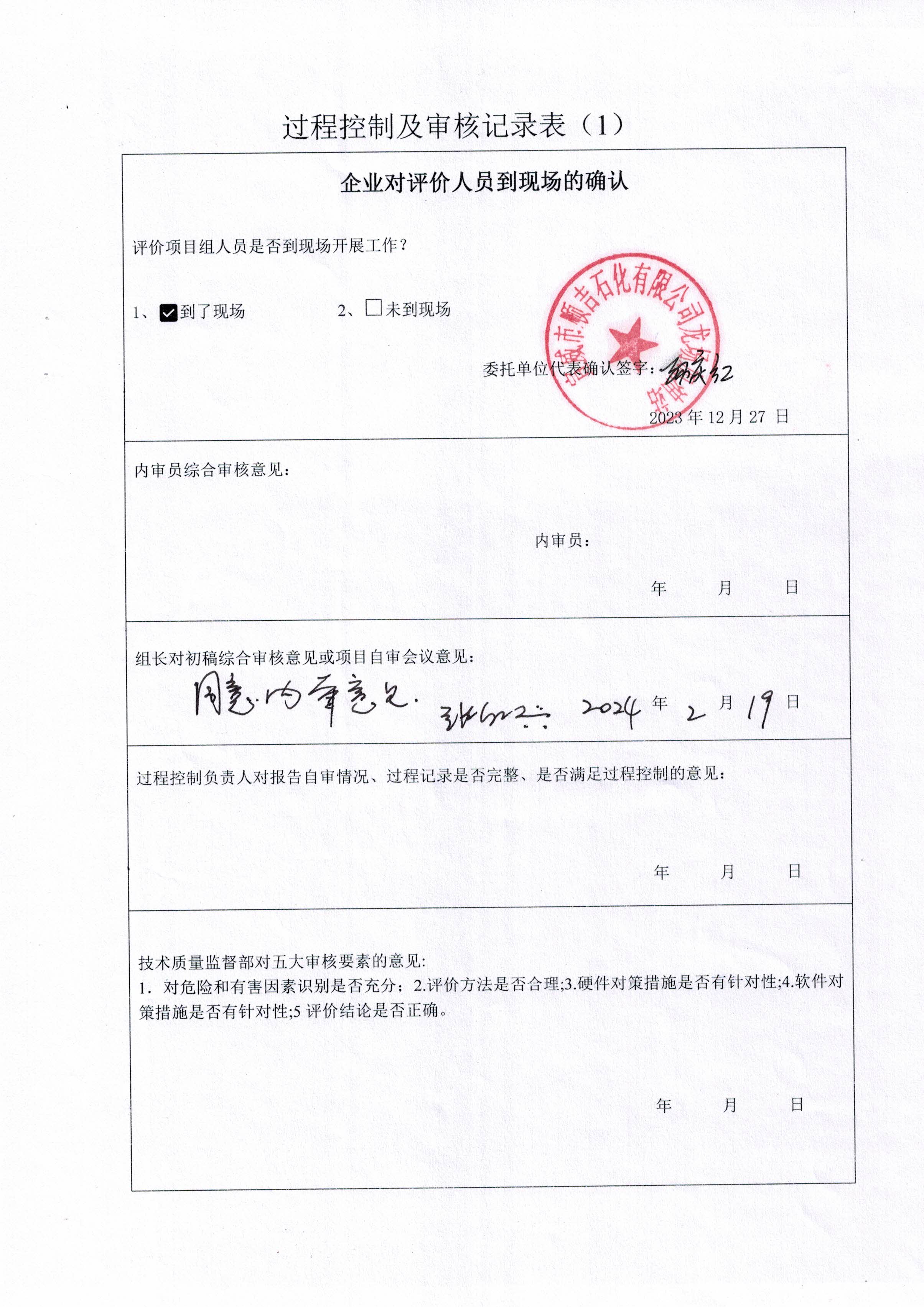 技術(shù)負責人審核 | 內(nèi)審意見(√ 通過 口 不通過 ) √是 口 否 | |||||||
