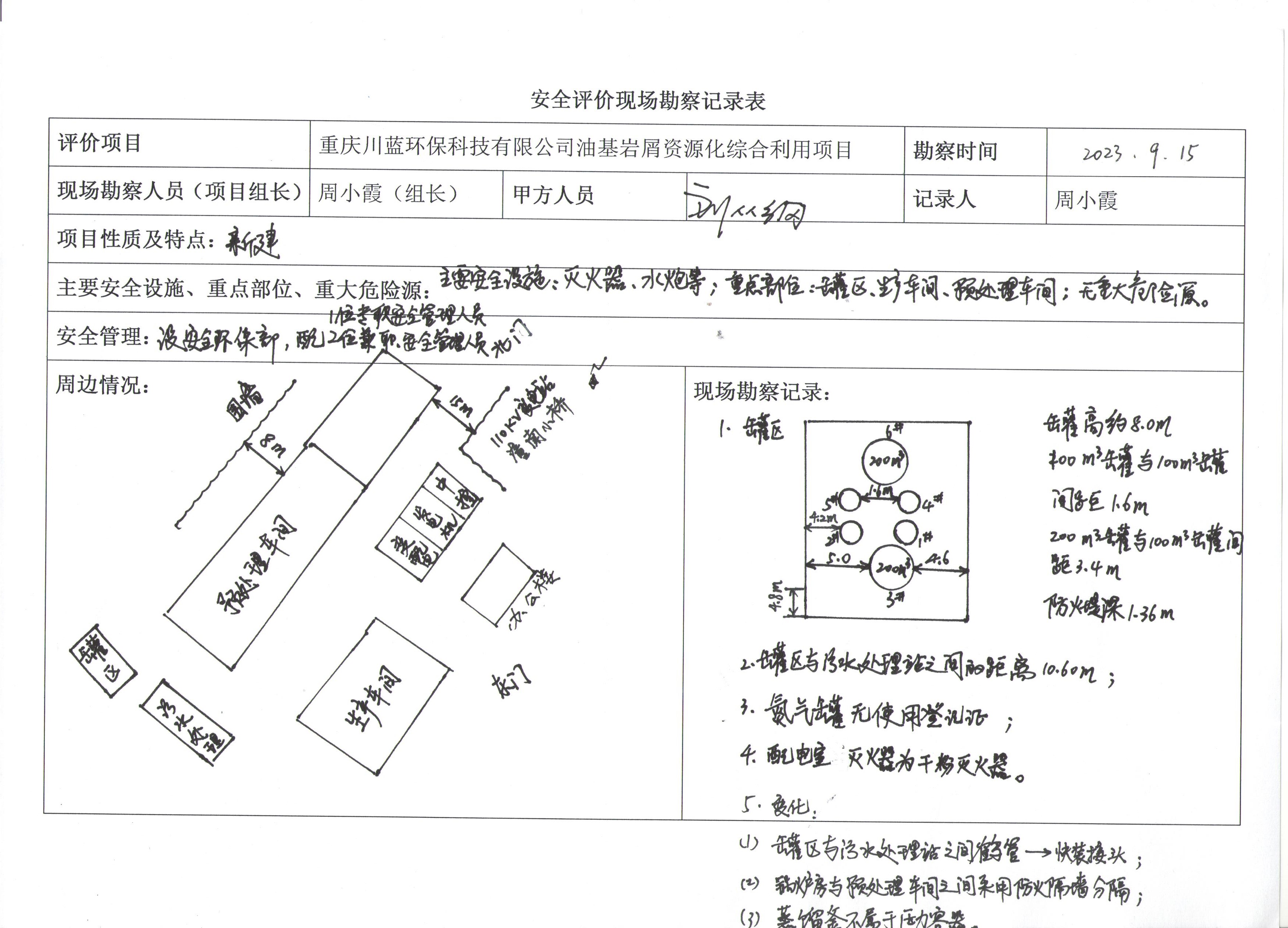 現(xiàn)場勘查情況 | 預(yù)處理車間、生產(chǎn)車間、變配電室、儲(chǔ)油間、裝卸區(qū)、儲(chǔ)罐區(qū)等安全設(shè)施和安全管理符合安全生產(chǎn)條件。 | |||||||
