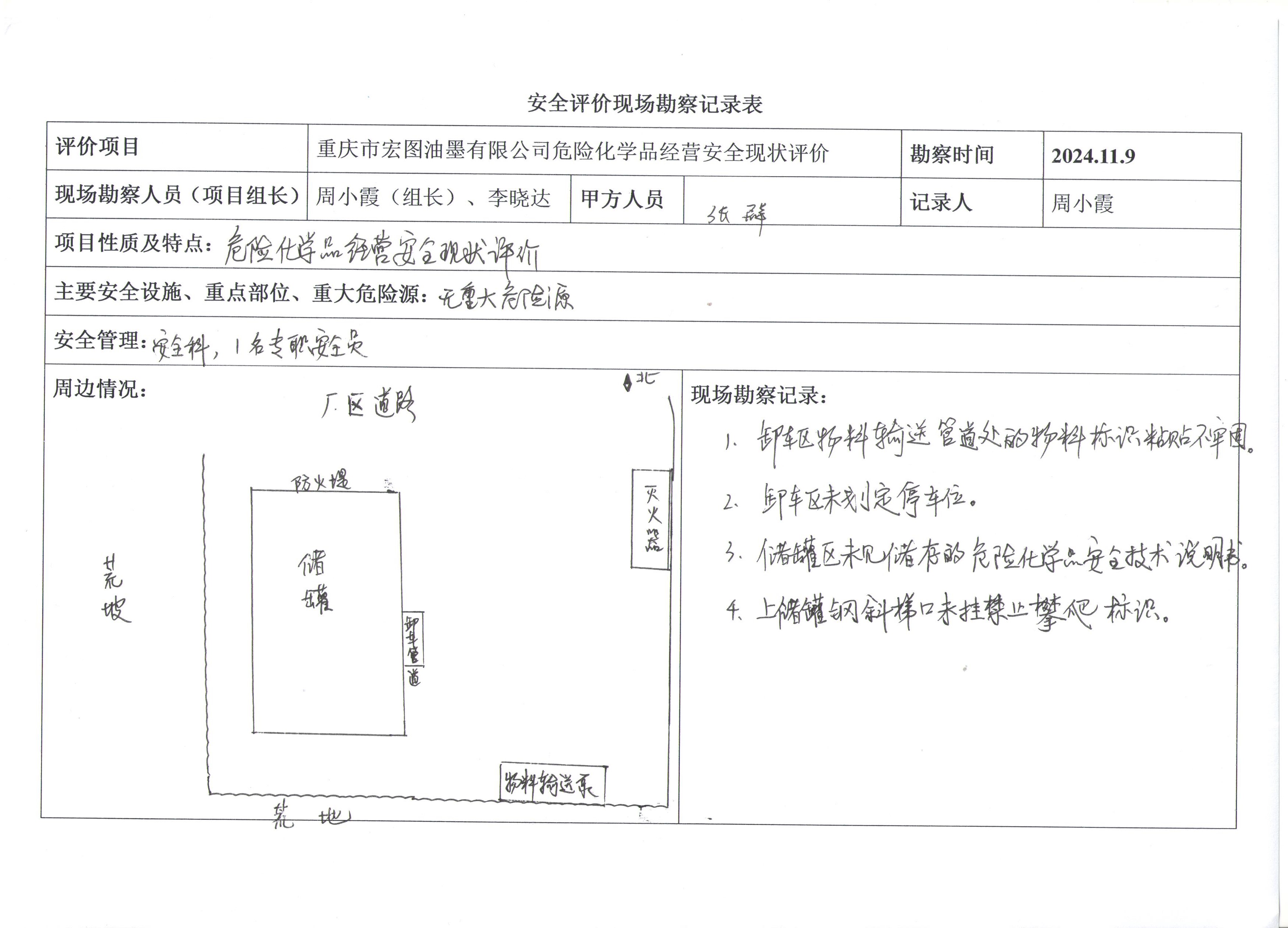 項(xiàng)目名稱 | 重慶市宏圖油墨有限公司危險化學(xué)品經(jīng)營安全現(xiàn)狀評價報(bào)告 | 合同編號 | DA(渝)-PJ-20241104 | |||||