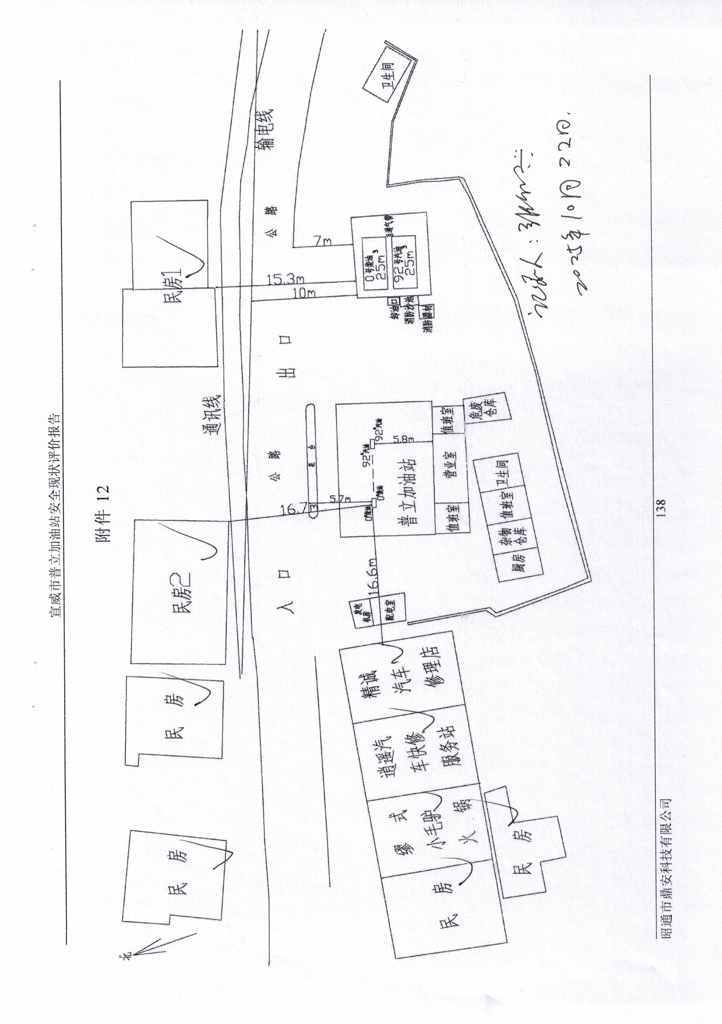 評價結(jié)論為:宣威市普立加油站已完成本次評價發(fā)現(xiàn)的不符合項整改,站址選擇及平面布置、加油工藝及設施、消防設施、電氣及報警系統(tǒng)、建(構(gòu))筑物等方面符合《汽車加油加氣加氫站技術(shù)標準》(GB50156-2021)、《加油站作業(yè)安全規(guī)范》(AQ3010-2022)標準規(guī)定;經(jīng)營場所、危險化學品儲存設施、人員配置及培訓考核、安全管理制度、安全操作規(guī)程、應急預案、應急物資滿足《危險化學品安全管理條例》(國務院令第591號,第645號修改)第三十四條、《危險化學品經(jīng)營許可證管理辦法》(原國家安監(jiān)總局令第55號公布,第79號修正)第六條要求,從安全的角度宣威市普立加油站具備危險化學品經(jīng)營的安全條件。 | ||||||||