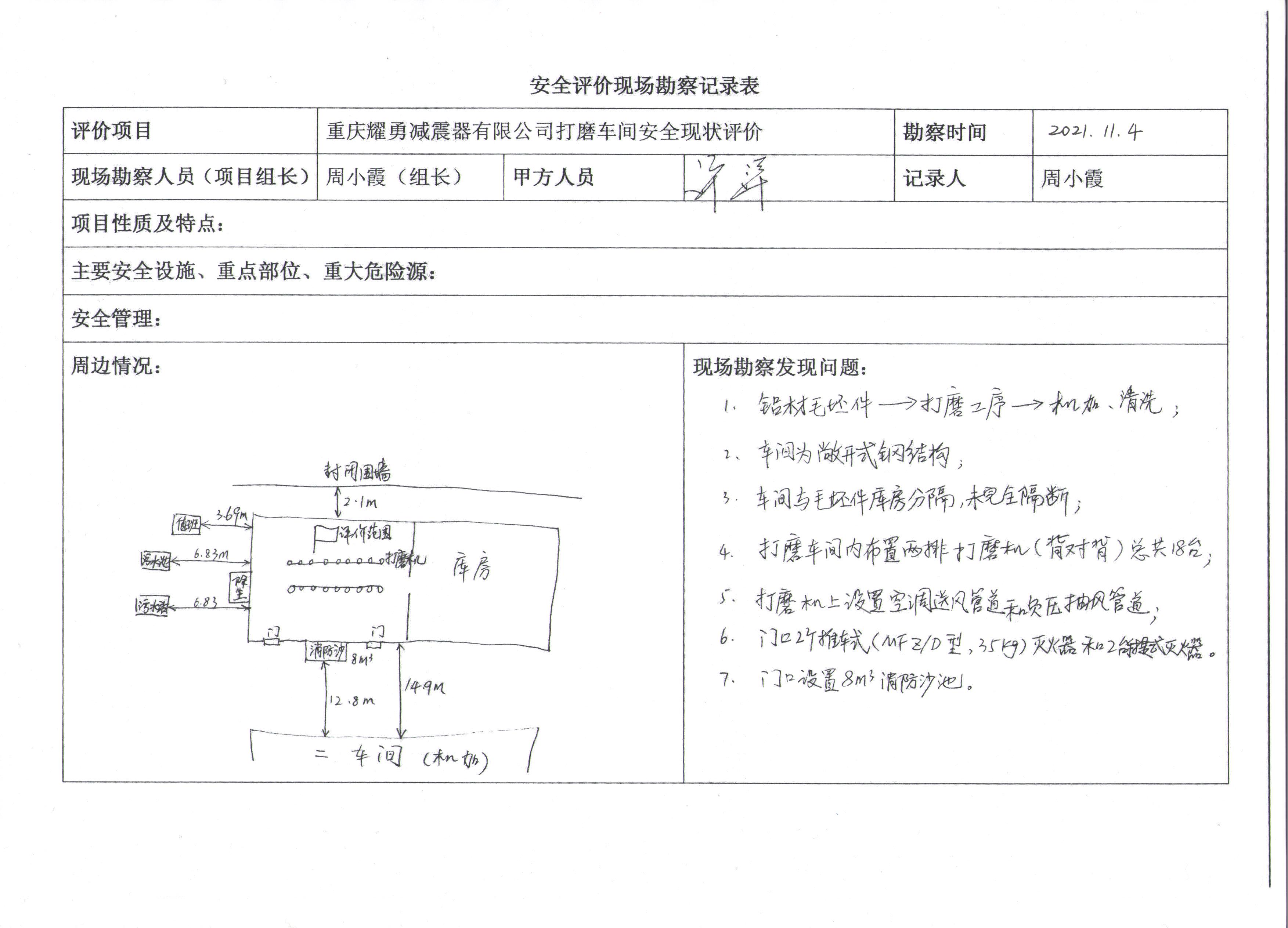項(xiàng)目名稱 | 重慶耀勇減震器有限公司打磨車間安全現(xiàn)狀評(píng)價(jià)報(bào)告 | 合同編號(hào) | DA(渝)-PJ-2021004 | |||||